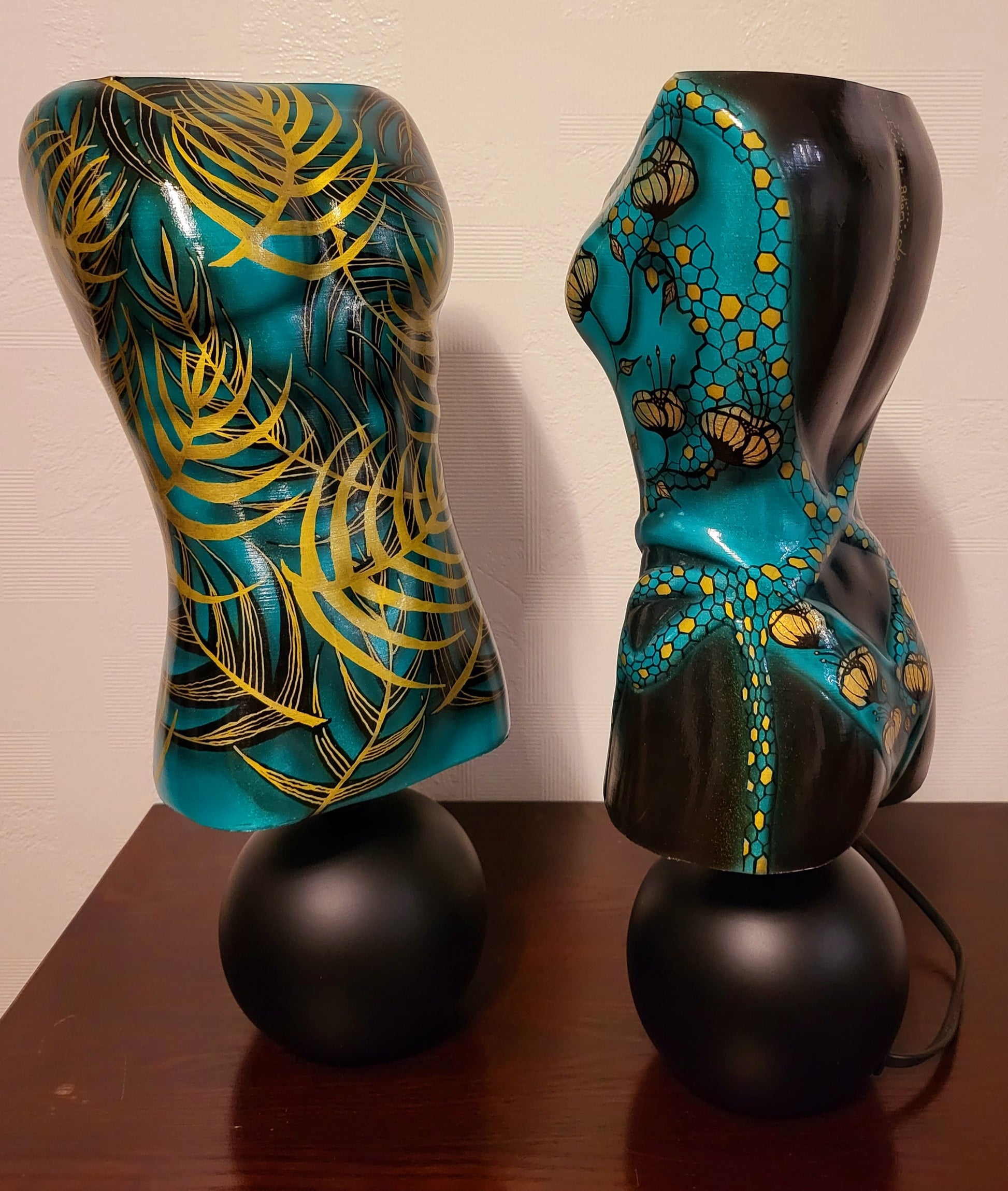 Entièrement peint à la main et à l'aerographe, chaque lampe est une œuvre d'art à part entière.