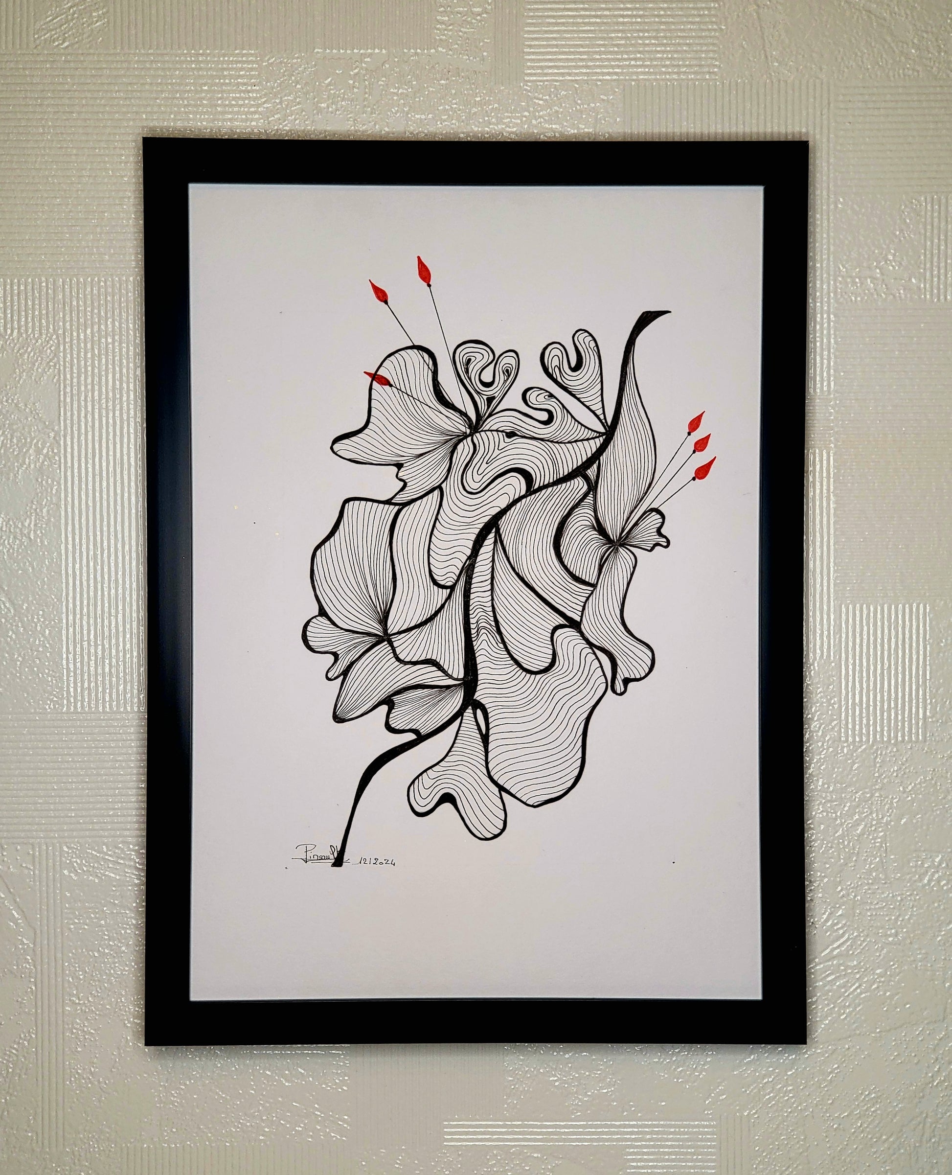 Format A4. Réalisation à l'encre. Vendu avec le cadre. Pièce unique
