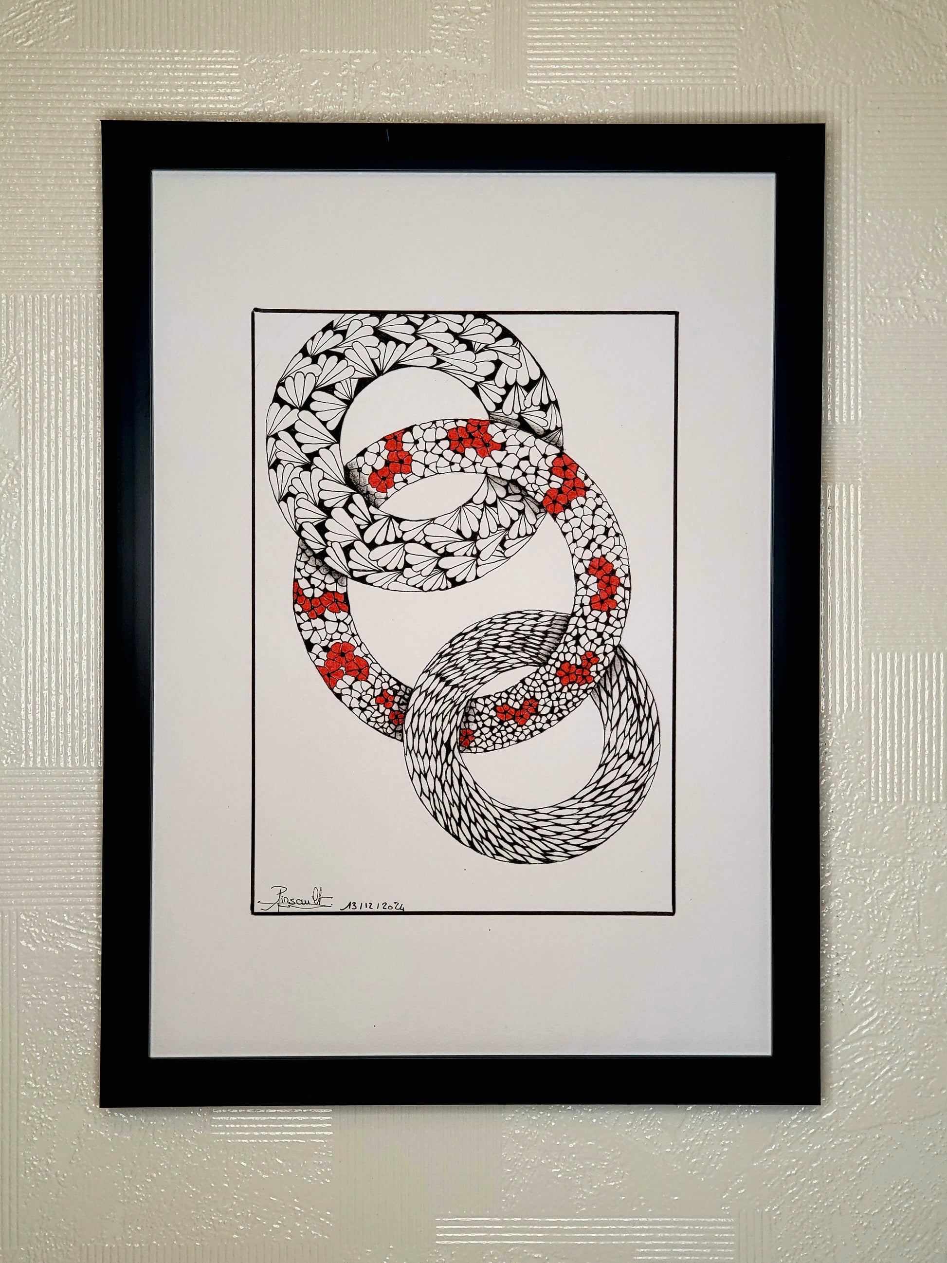 Découvrez Les Anneaux, un magnifique tableau réalisé avec trois anneaux entrelacés formant une composition abstraite.