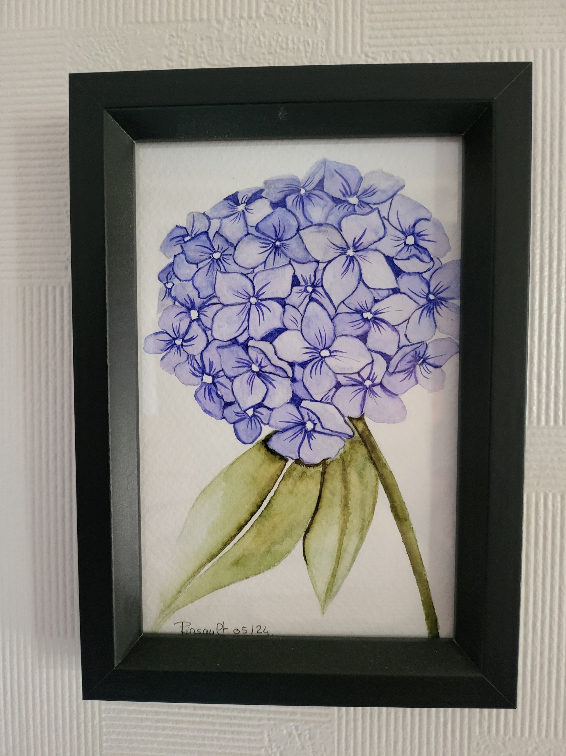 Admirez et appréciez cet Hortensia bleuté à travers cette aquarelle originale.