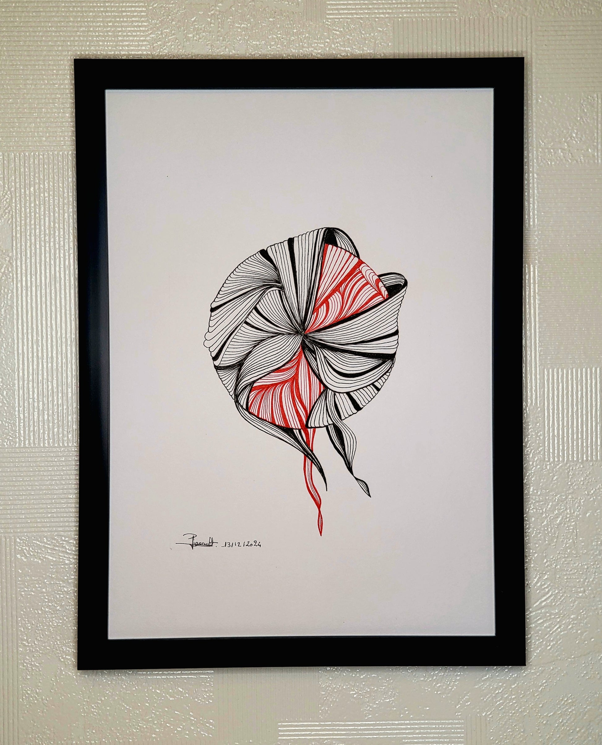 Format A4. Réalisation à l'encre. Vendu avec le cadre. Modèle unique.